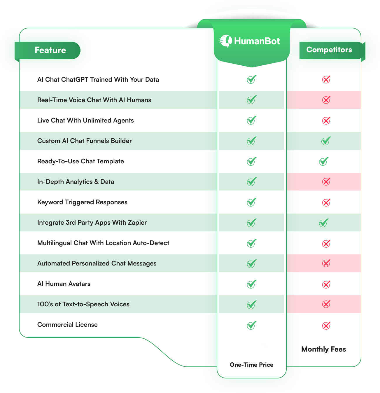 All the competing apps have limited features and charge hefty monthly fees. With HumanBot you save money and time!